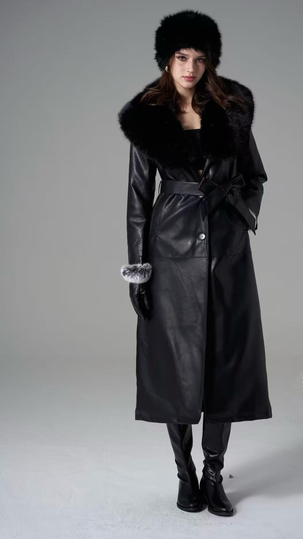Cappotto Regina in ecopelle con pelliccia – Nero