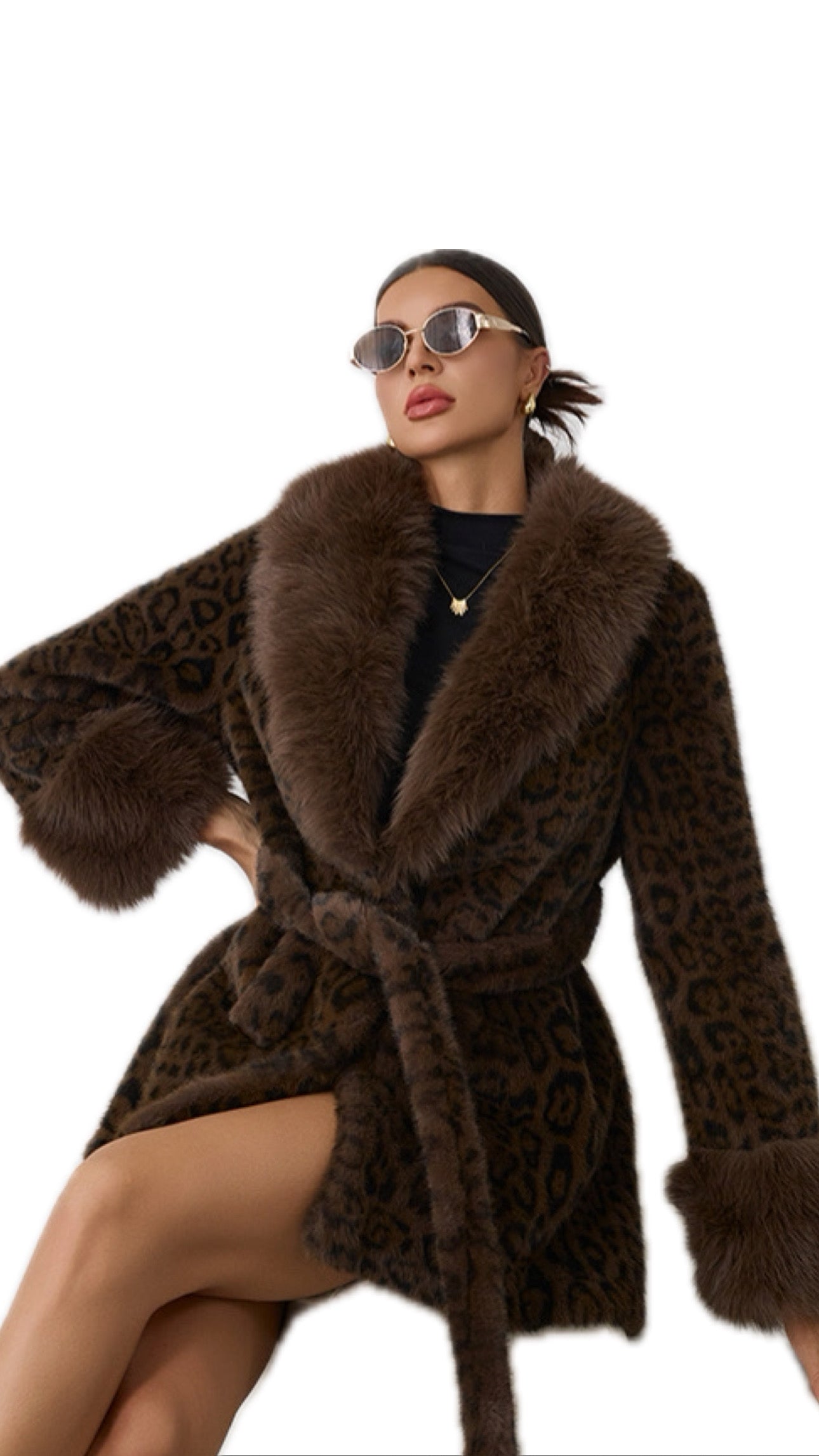 Giacca Manhattan leopardata con ecopelliccia – Marrone