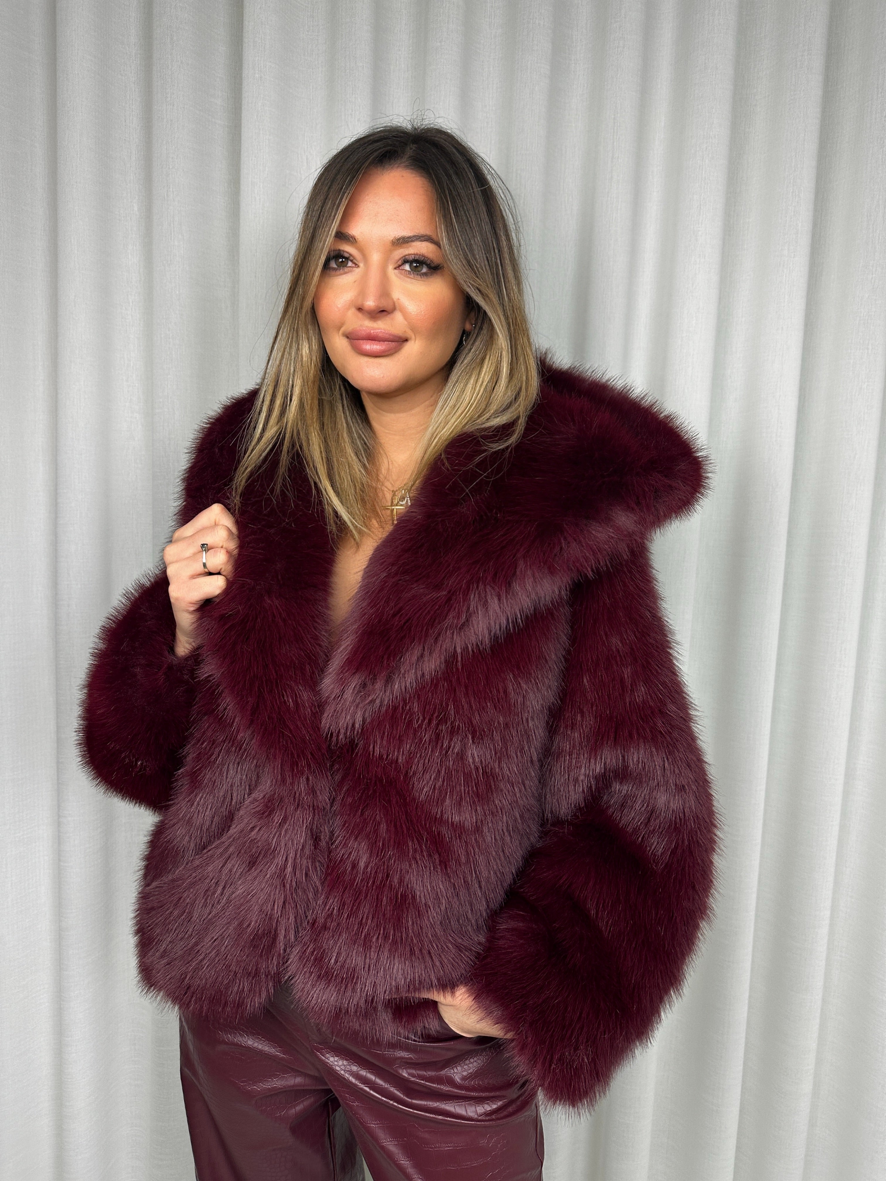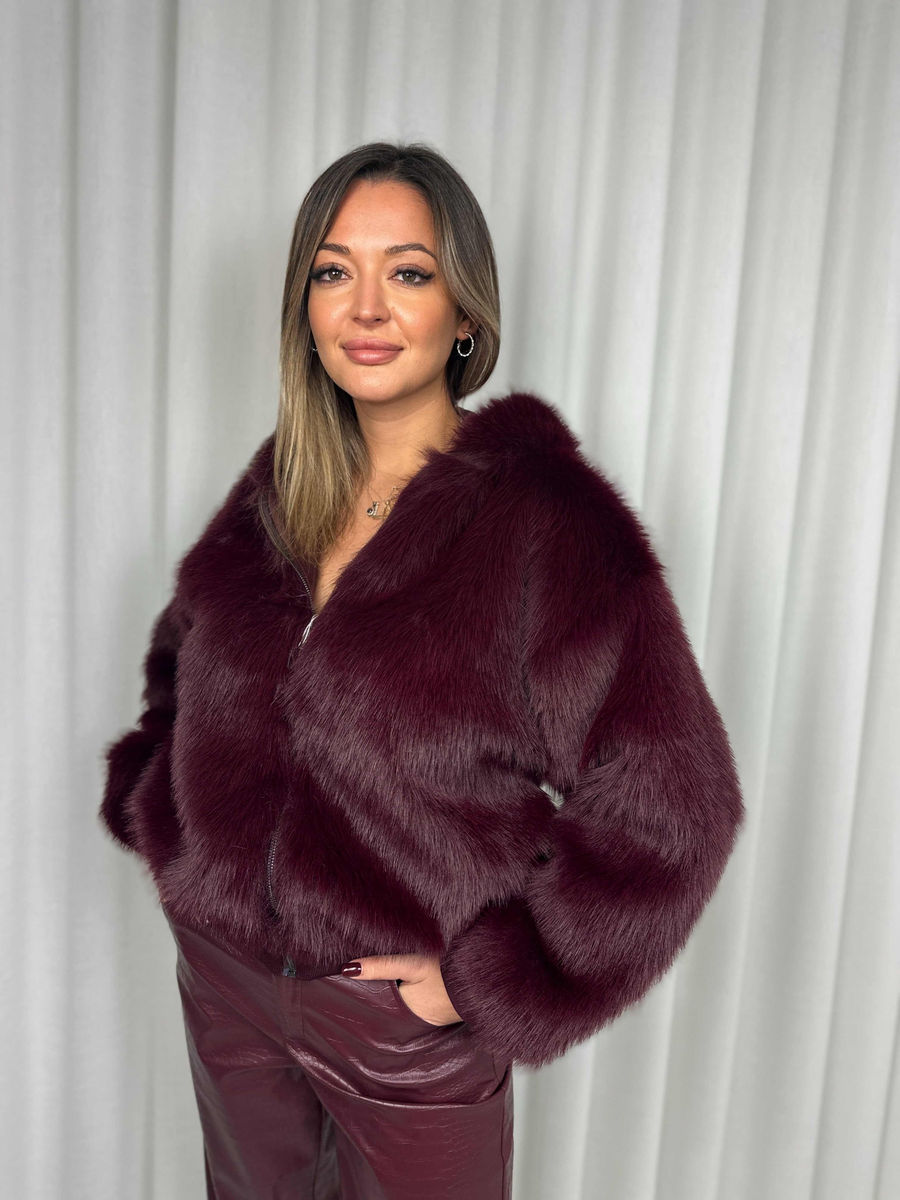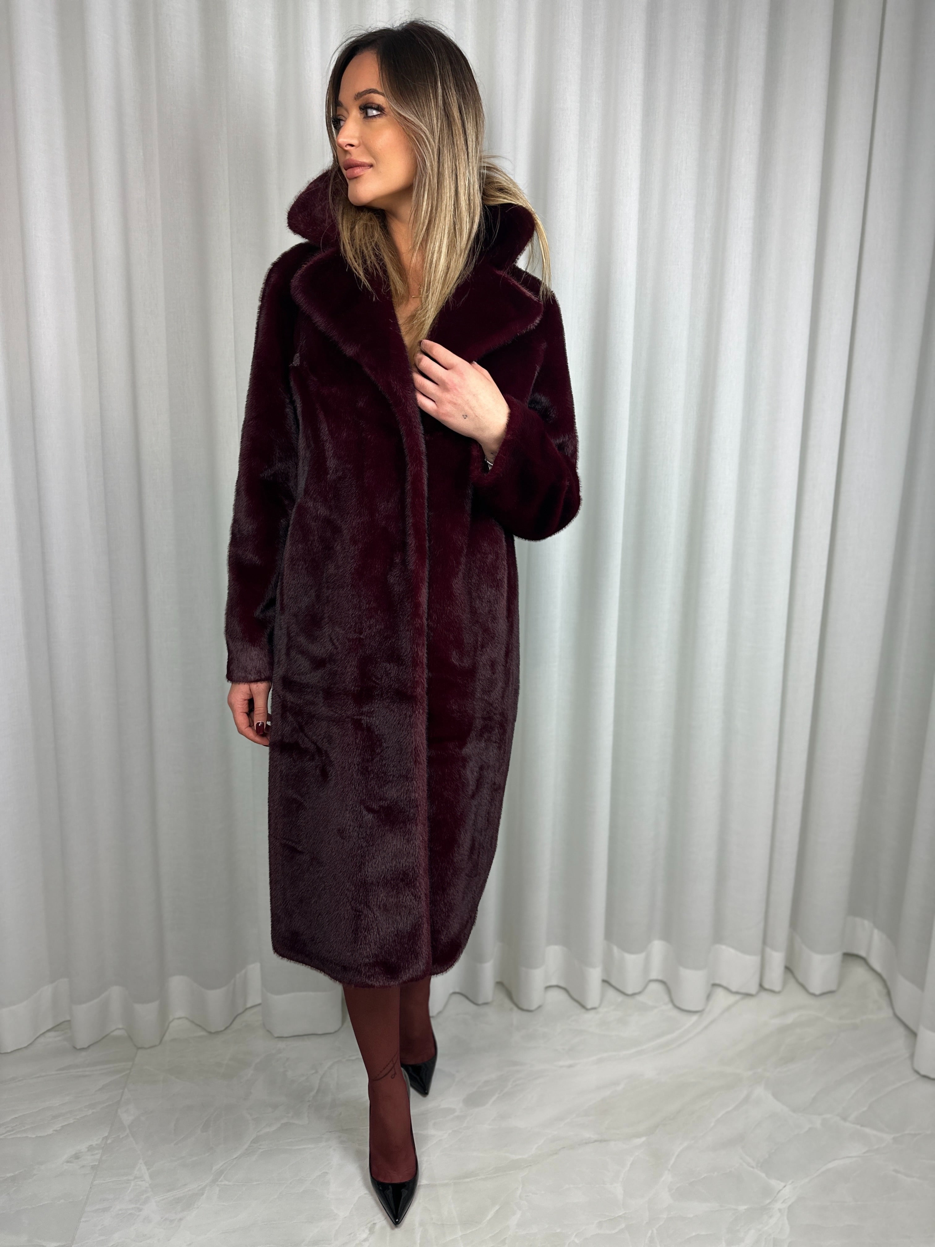Cappotto Velvet Rose in ecopelliccia – Bordeaux/ Marrone