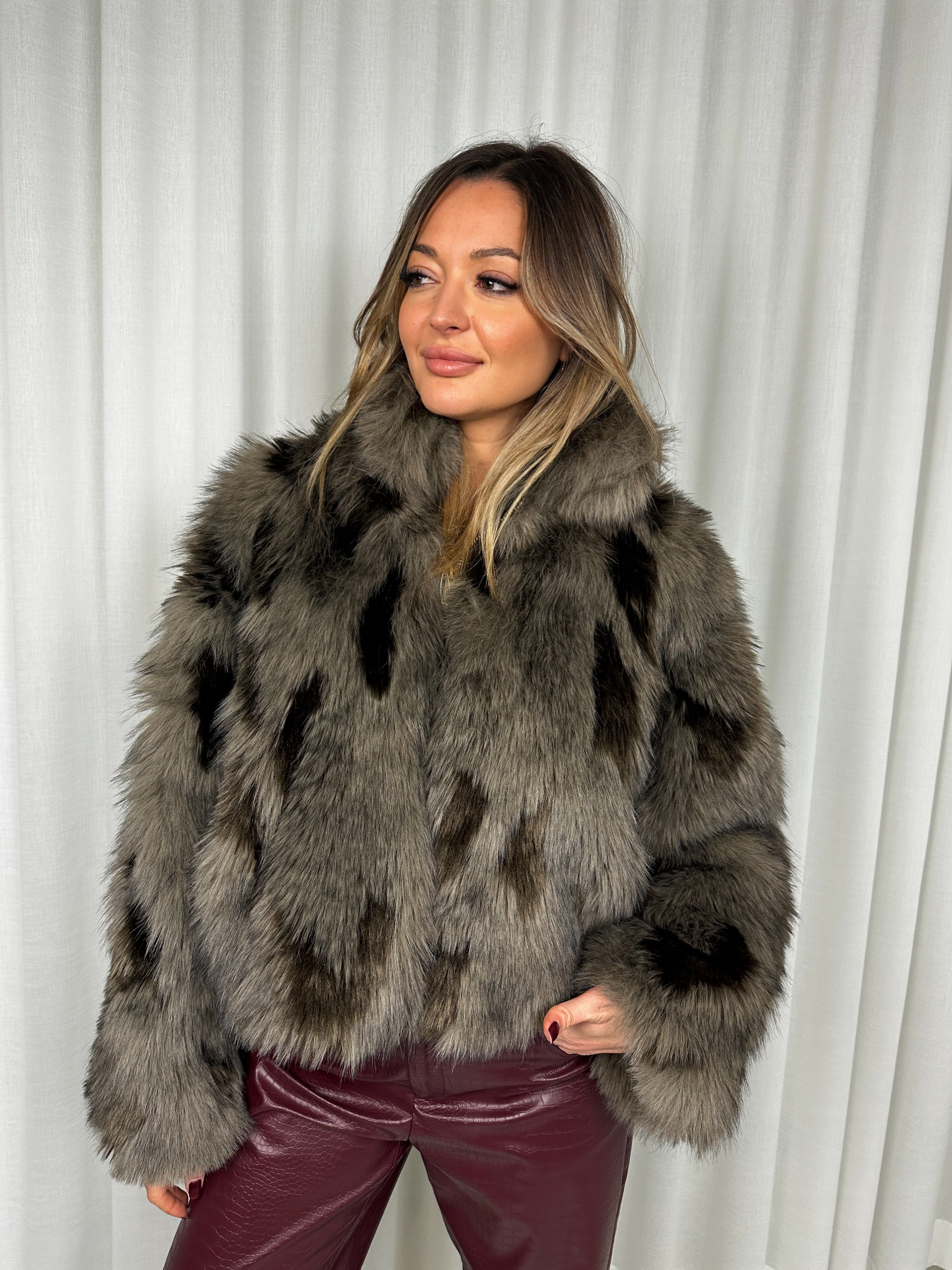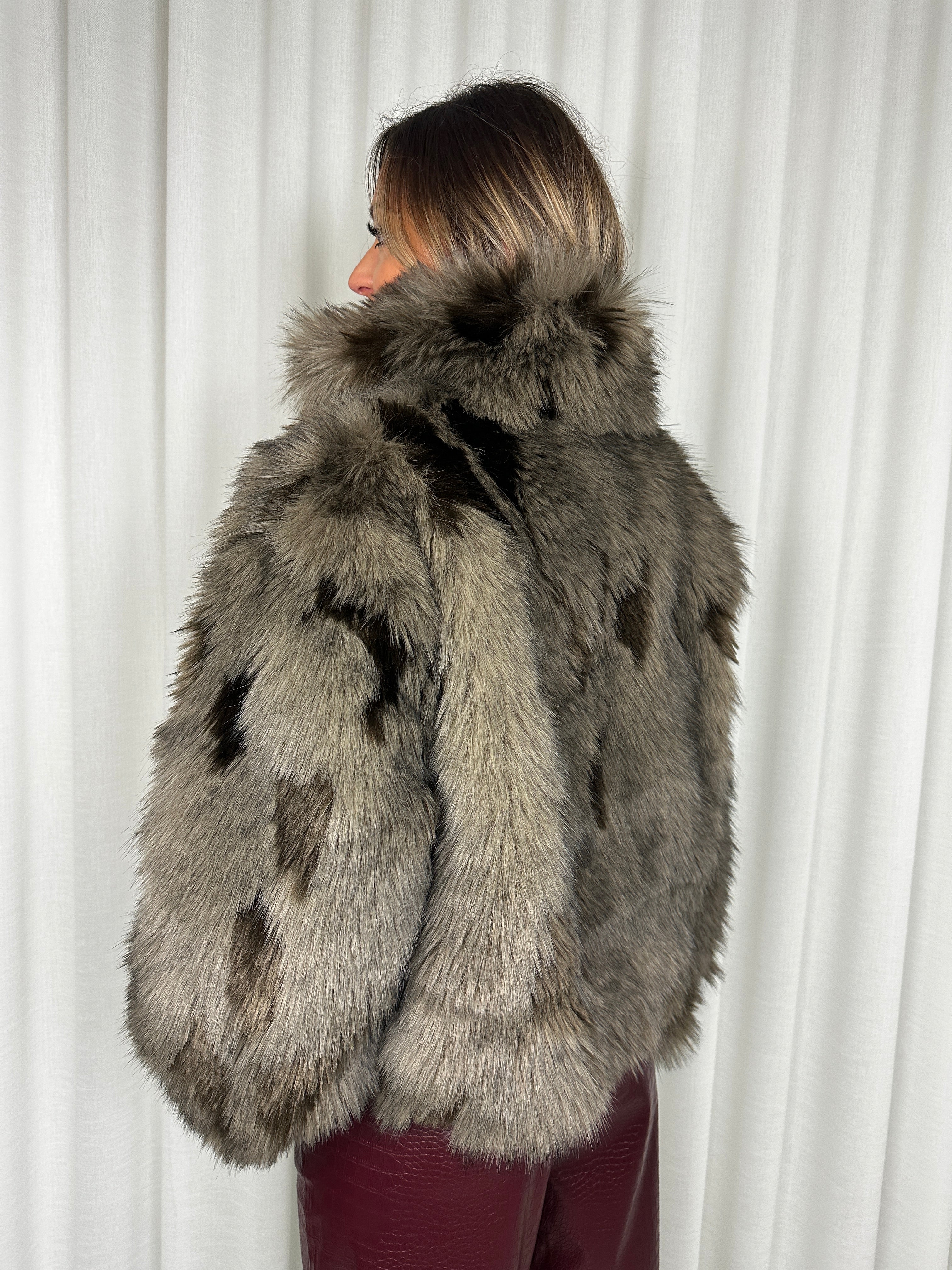 Giacca Alaska in ecopelliccia maculata – Grigio fumo