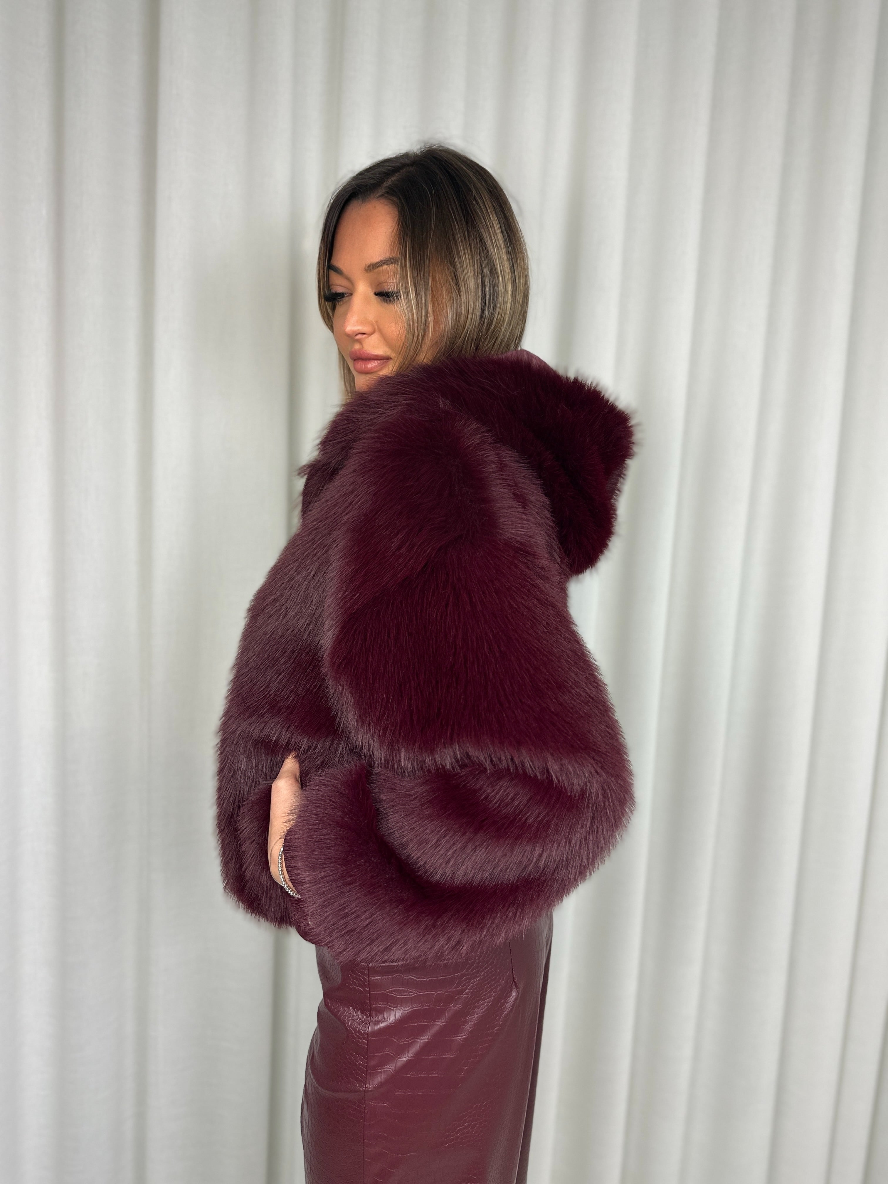 Giacca Oslo in ecopelliccia con cappuccio – Bordeaux