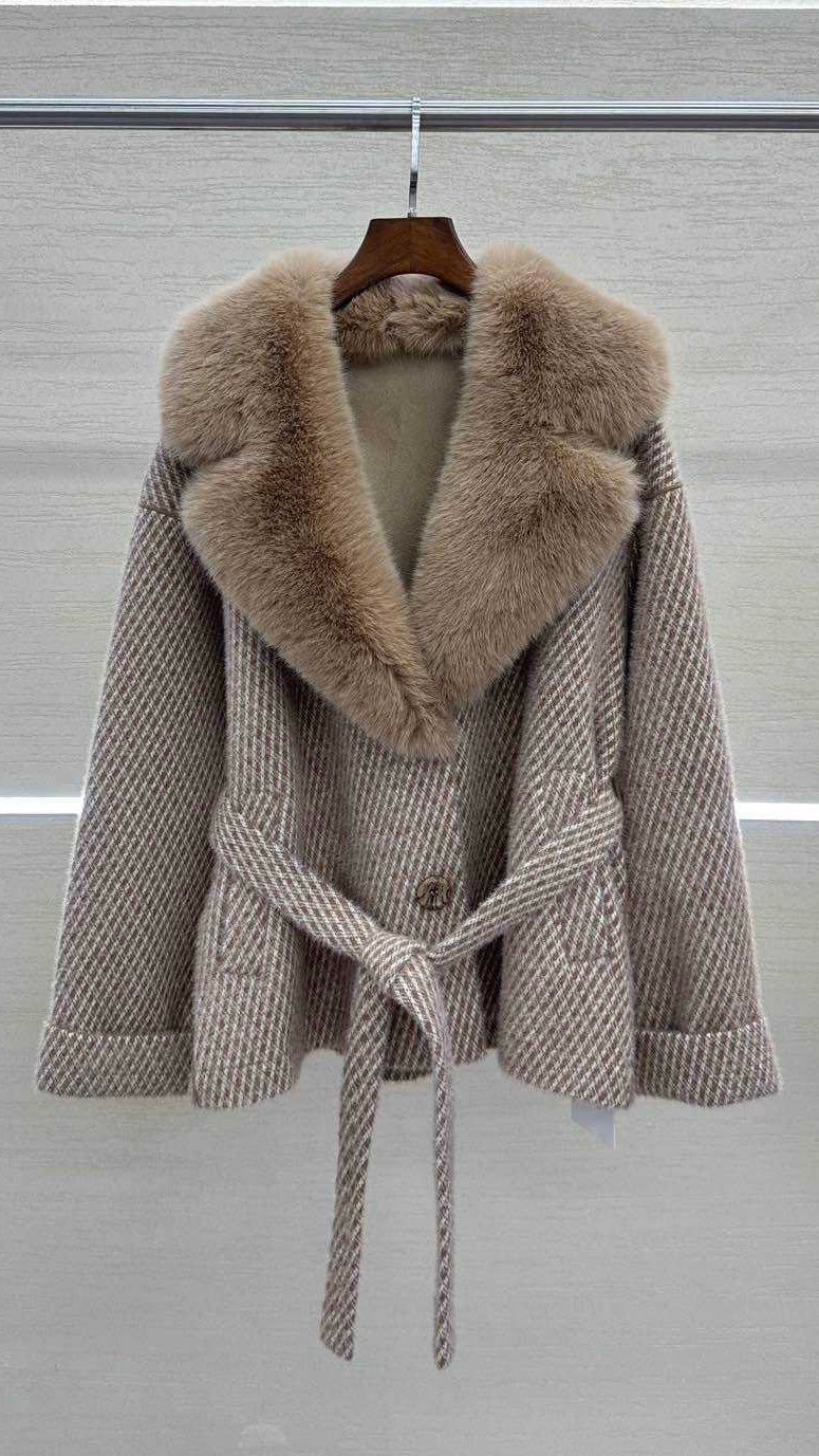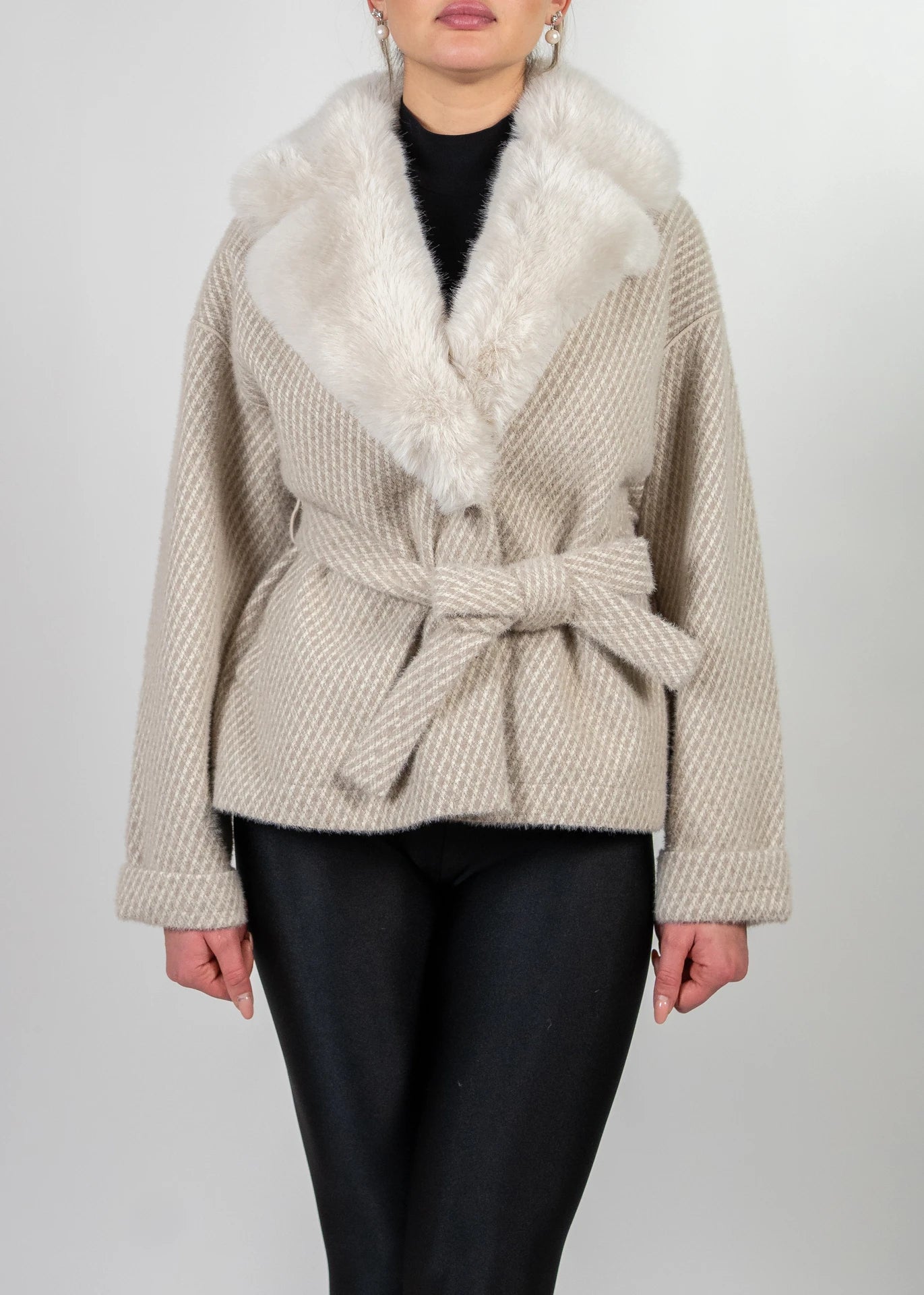 Cappotto London in lana con collo in ecopelliccia – Reversibile