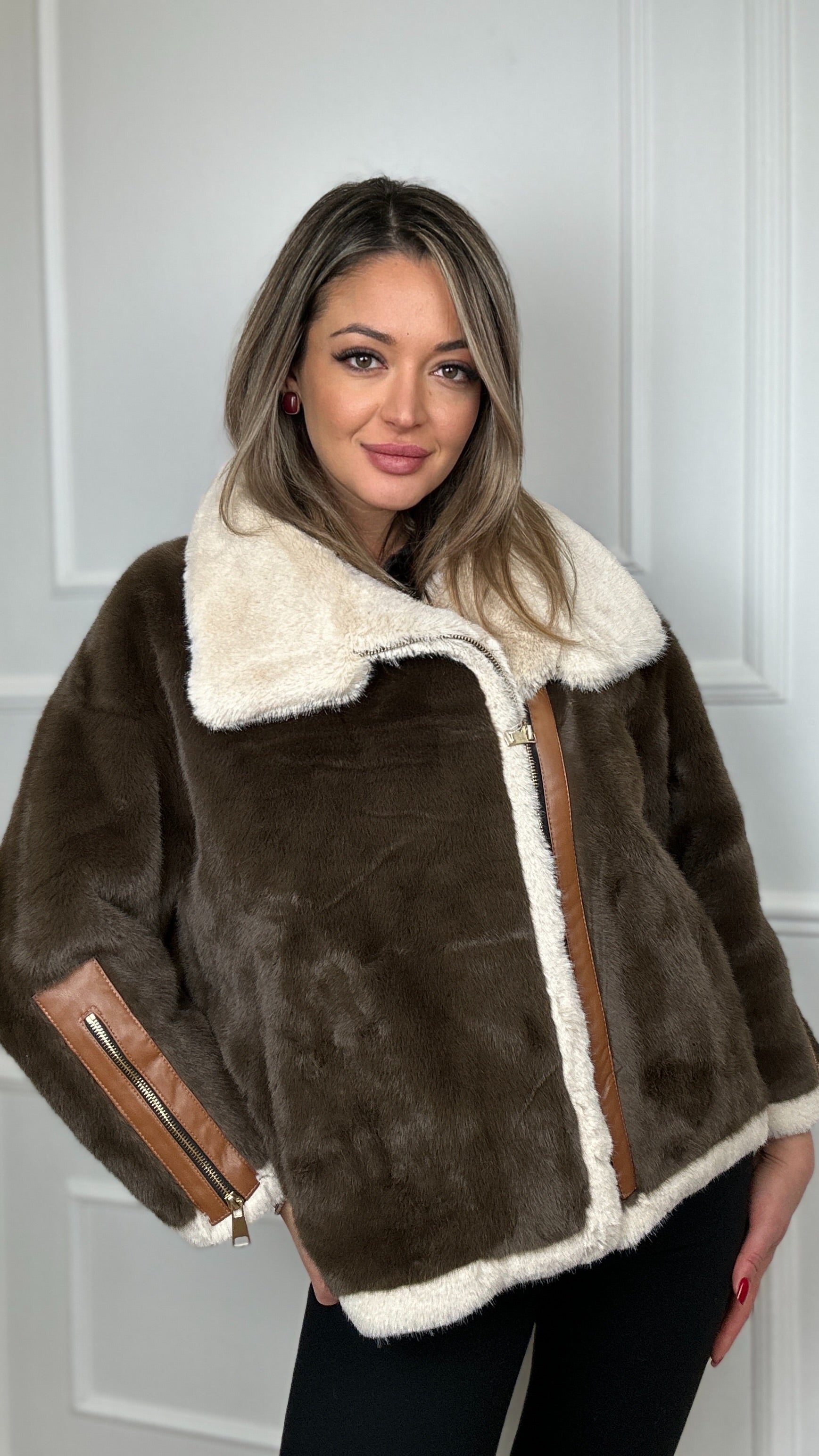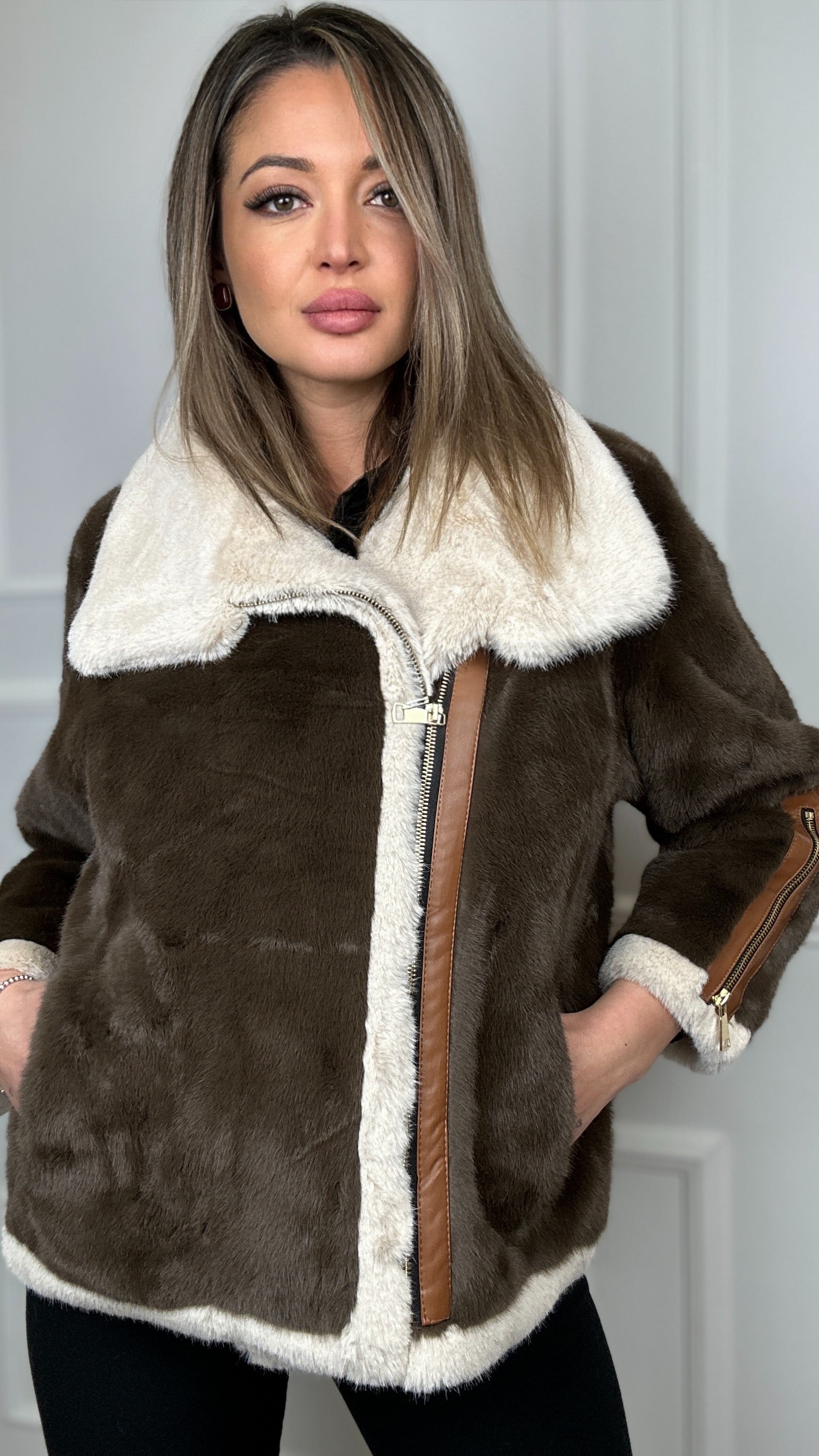 Giacca Clara in Eco-Pelliccia Reversibile – Bi-Color- Caffè/ Cream