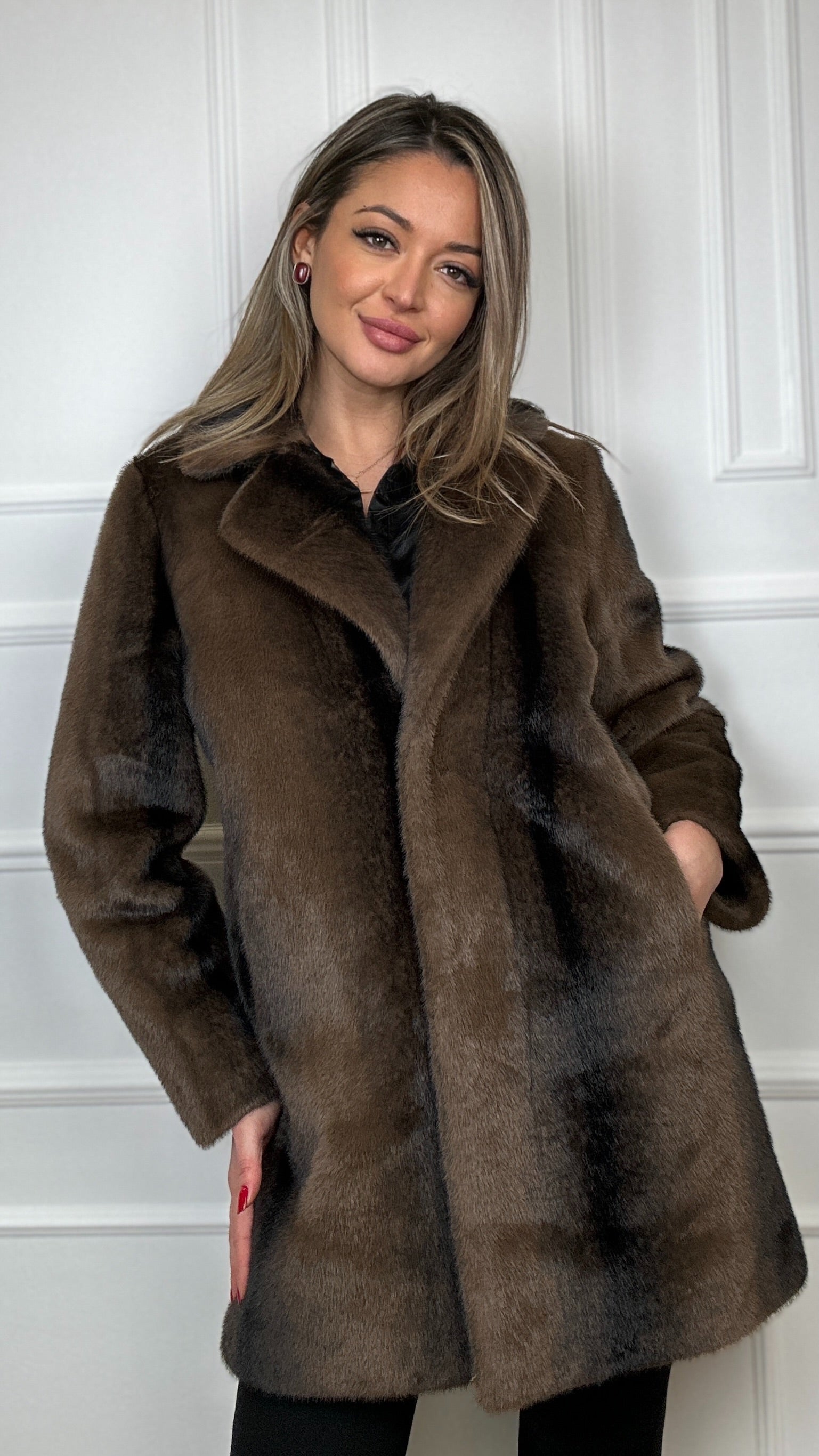 Cappotto Lumière in Eco-Pelliccia Sfumata - Beige/ Marrone