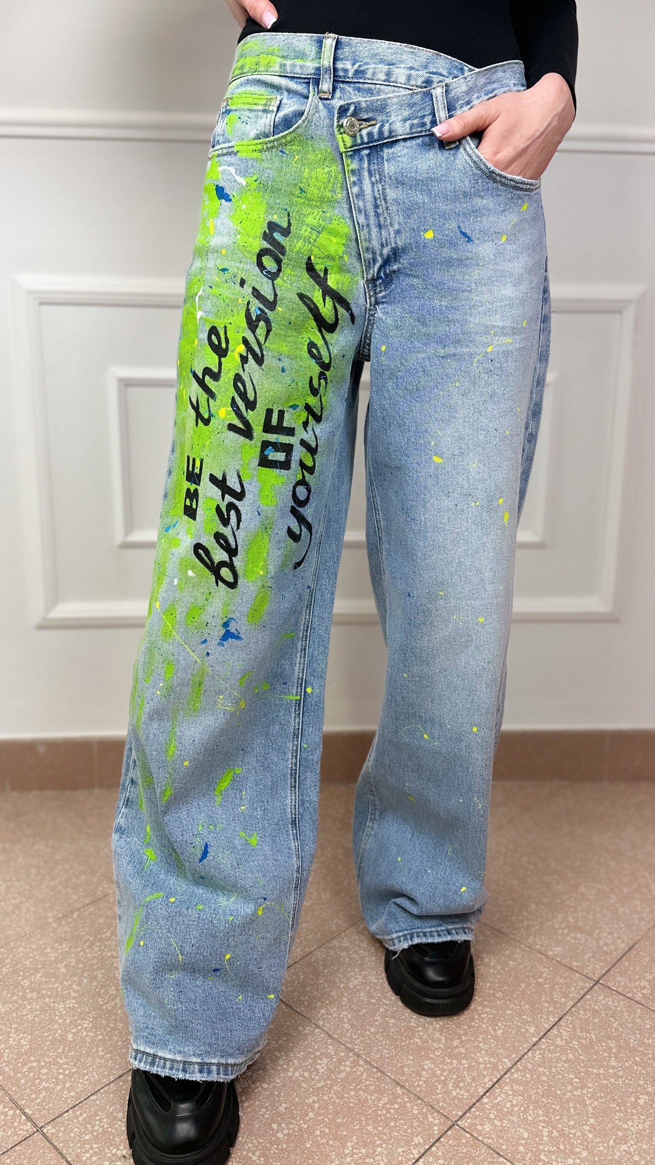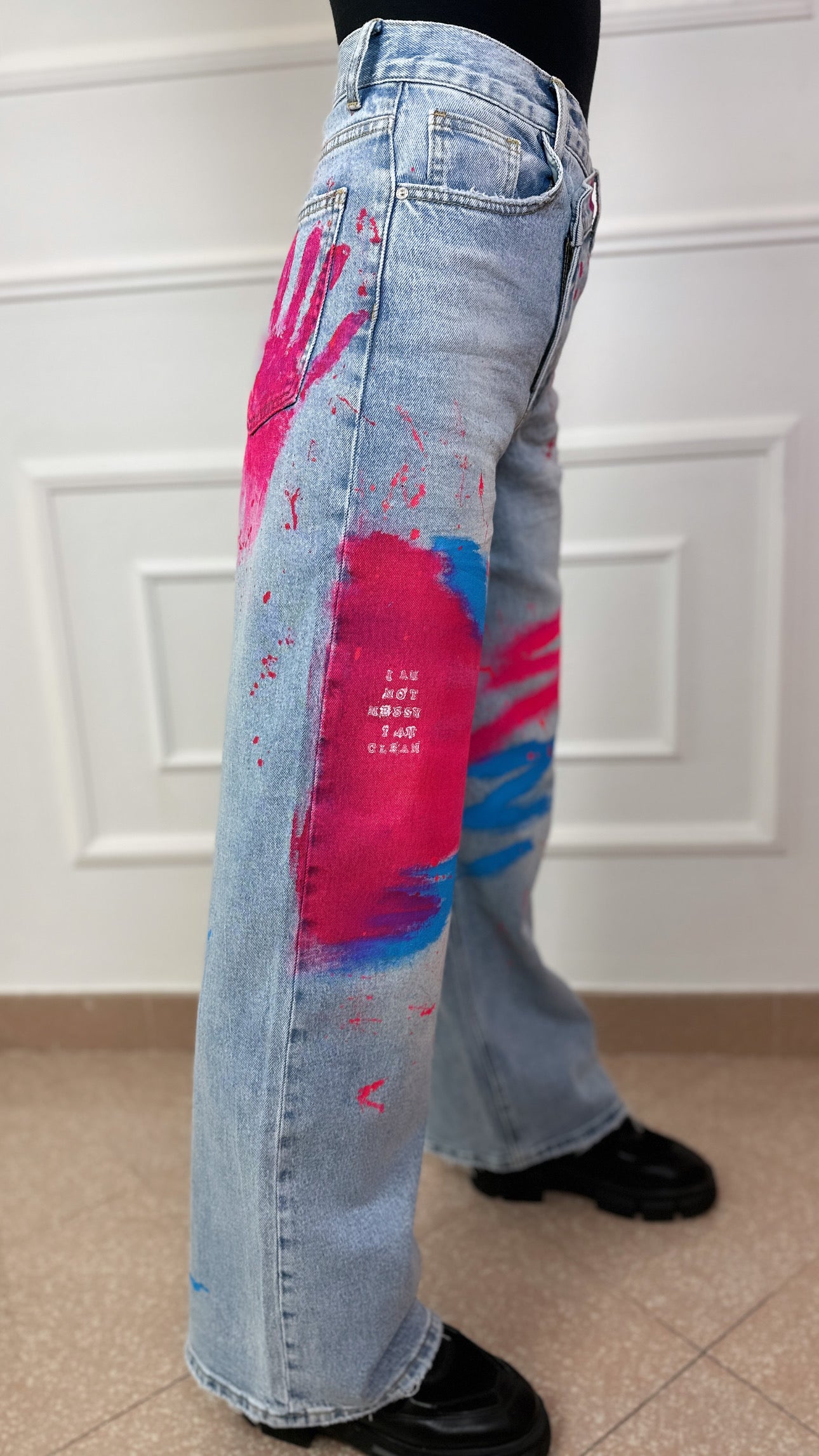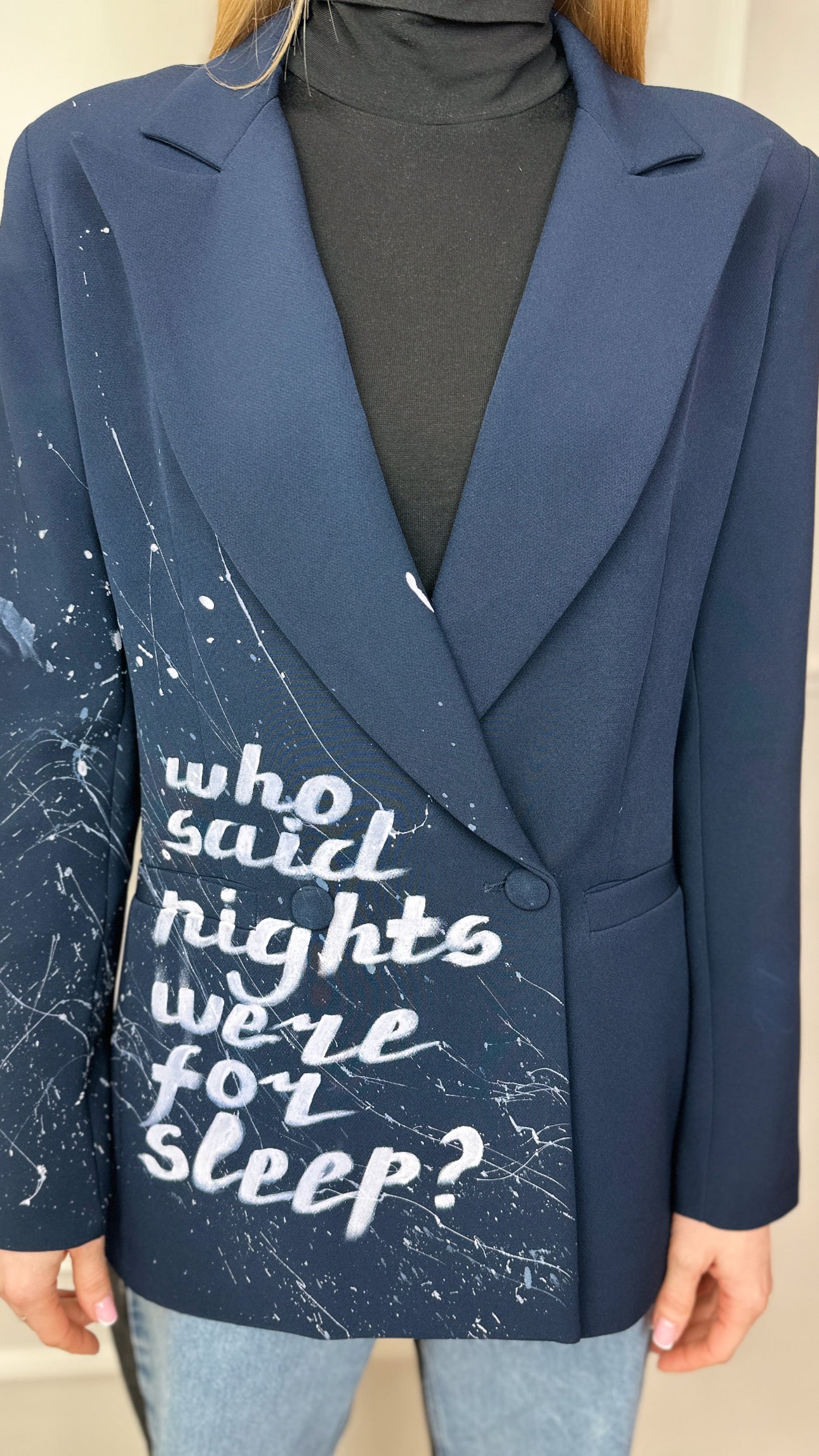 Quando è arrivata in Italia, Eugenia aveva già una visione chiara: voleva creare qualcosa di irripetibile. Non le bastava semplicemente “disegnare” su un capo d’abbigliamento; voleva imprimere un’anima, un’energia viscerale in ogni singolo pezzo. Così ha iniziato a dipingere su giubbotti, trasformando la pelle e denim in un campo di battaglia tra la bellezza e l’intensità . Il suo stile? Un mix esplosivo di colori forti, linee decise, dettagli crudi e un po’ “aggressivi”. Le sue creazioni non erano solo giubbotti, erano dichiarazioni di intenti, provocazioni su tessuti che spingevano chi li indossava a sfidare lo status quo.